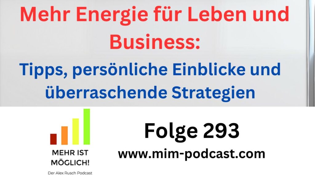 Im Rahmen der Themenmonate der Rusch-Welt ist der März 2026 der »Energie-Monat«. In Folge 293 des »Mehr ist möglich!«-Podcasts mit dem Titel »Mehr Energie für Leben und Business: Tipps, persönliche Einblicke und überraschende Strategien« gibt Alex Rusch konkrete und sehr unterschiedliche Tipps zur Steigerung der persönlichen Energie. Dabei gewährt er zum Teil sehr persönliche Einblicke in sein Unternehmerleben. Zudem vermittelt er hier nicht nur die üblichen Tipps, die Du überall hörst, sondern auch solche, die Dich überraschen werden. Direkt-Link: https://www.mim-podcast.com/